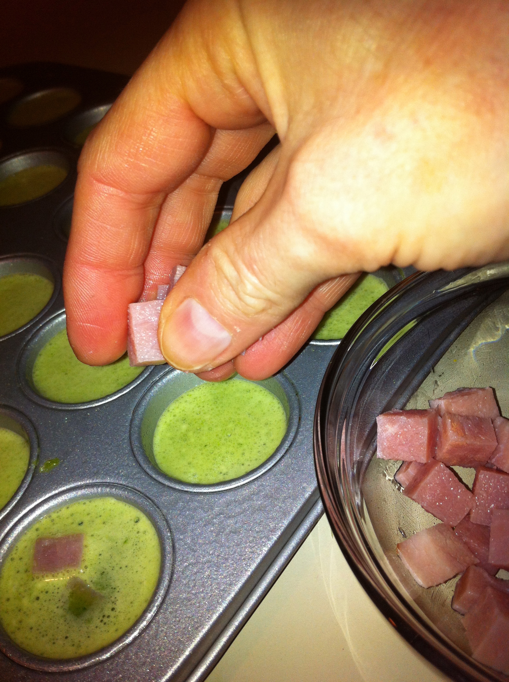 Here is a make to order or make ahead meal that both adults and children will like (OK some will like). Based on the our families favorite author Dr. Suess and his timeless classic Green Eggs and Ham (I do not claim to be the first person to make a breakfast based on this idea however, this is our families version). If you are familiar with the story, you know that Sam encourages an unknown character to eat green eggs and ham. After much persuasion, the unknown character tries them and much to his surprise, he likes it!